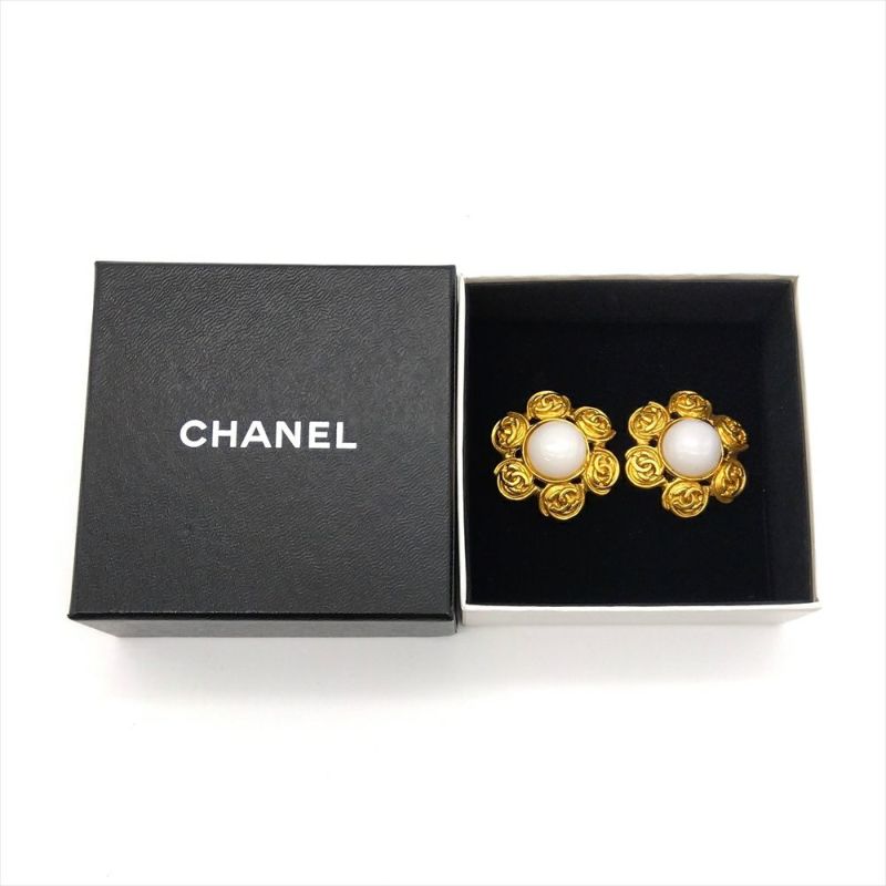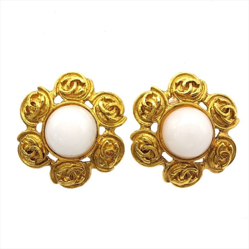 4. シャネル CHANEL イヤリング メタルg 94P ゴールド ココマーク フェイクパール ヴィンテージ レディース【中古】
