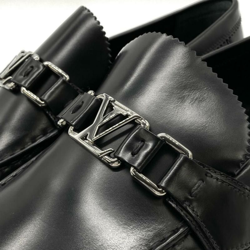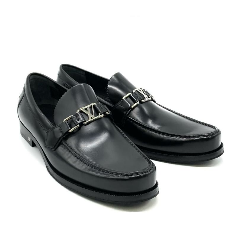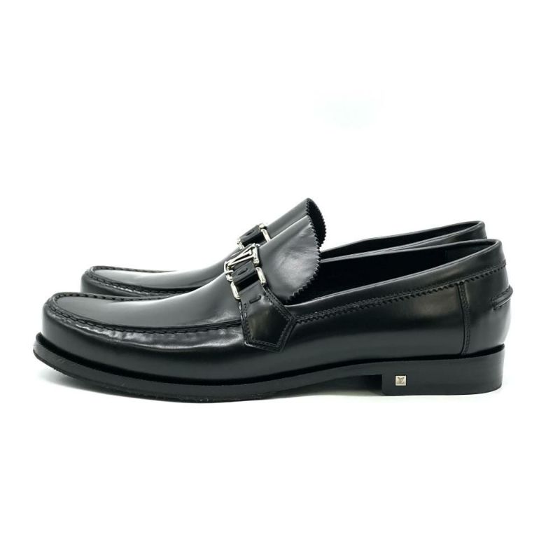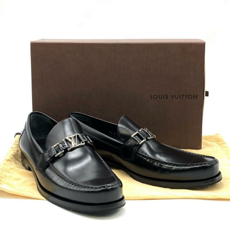 5. ルイヴィトン LOUIS VUITTON メジャーライン LV ロゴ ローファー ブラック FA0155 28cm メンズ【中古】