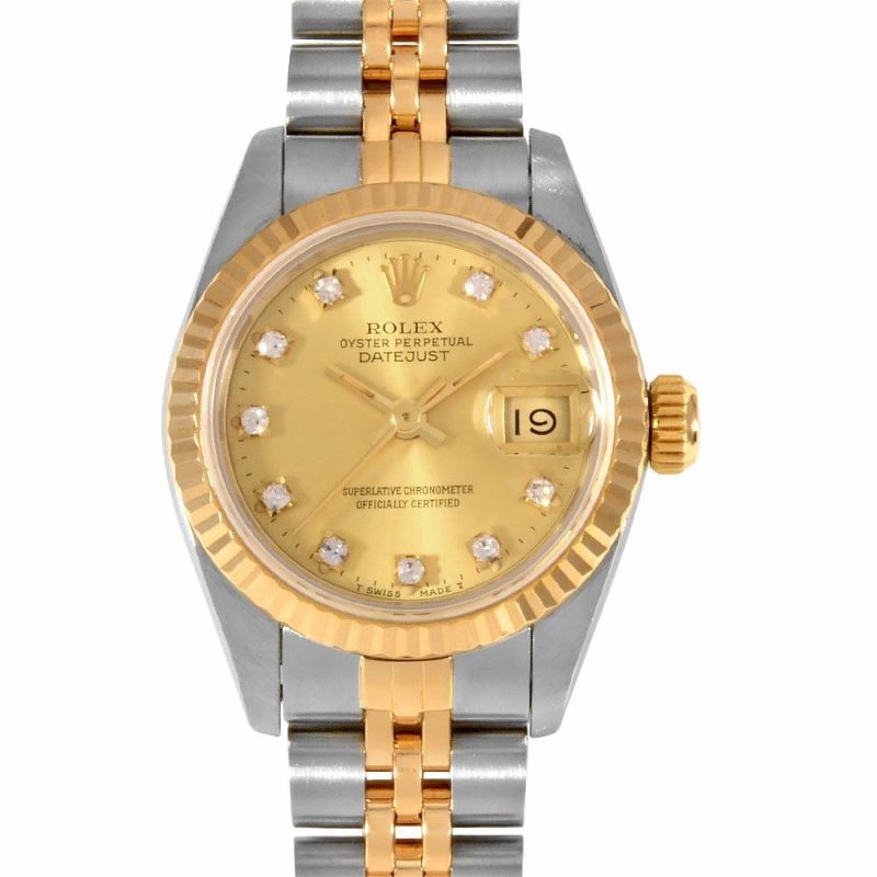 - ロレックス ROLEX 69173G デイトジャスト E番(1990~91年頃製造) 腕時計 シャンパン文字盤 YG×SS 10P ダイヤインデックス レディース【中古】