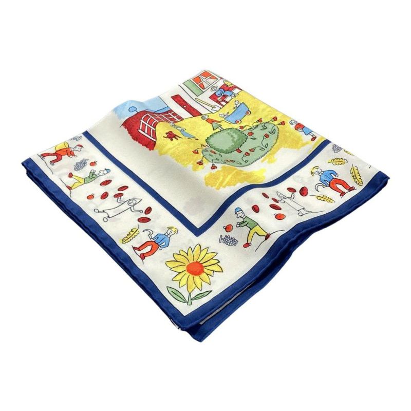 エルメス HERMES プチカレ カレ40 RE TOUR A LA TERRE 故郷に帰る スカーフ シルク ブルー【中古】