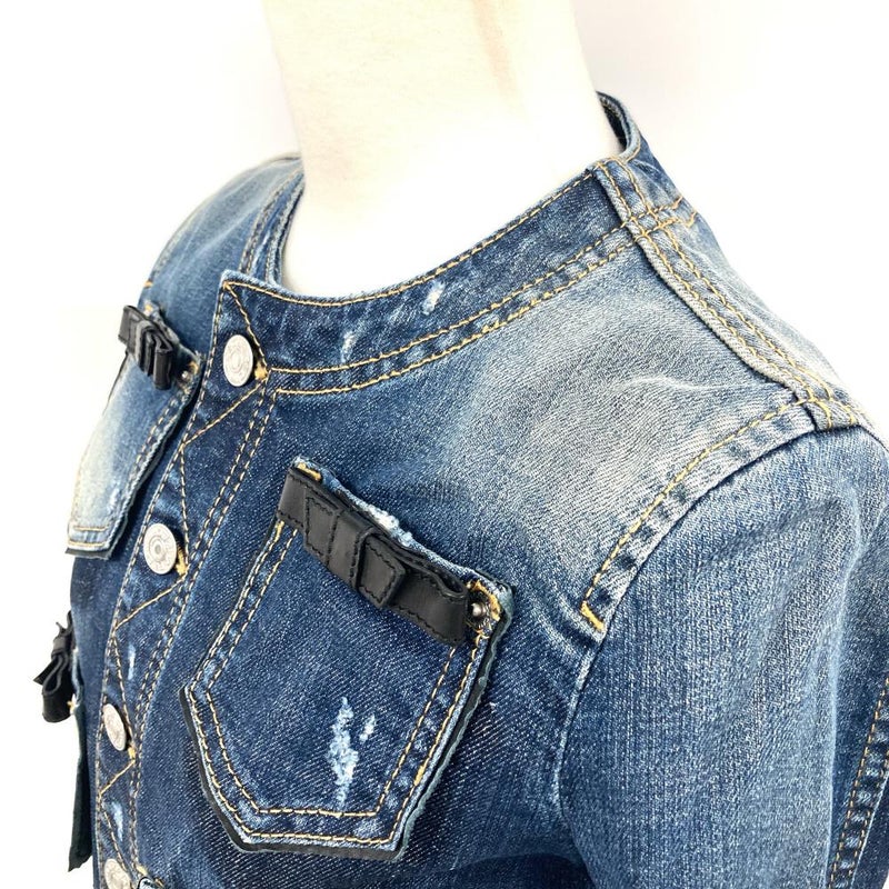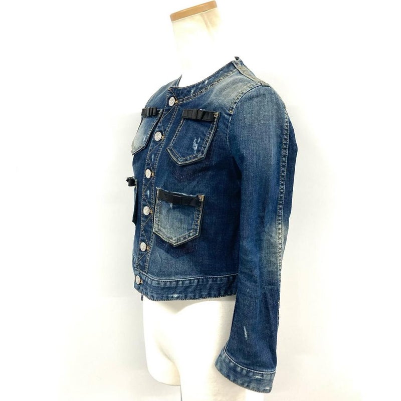 5. ディースクエアード DSQUARED2 ノーカラー デニムジャケット ブルー 38【中古】