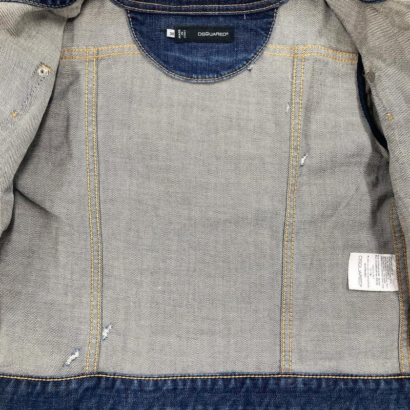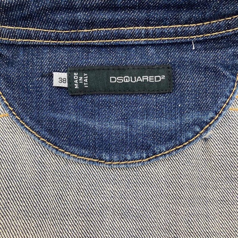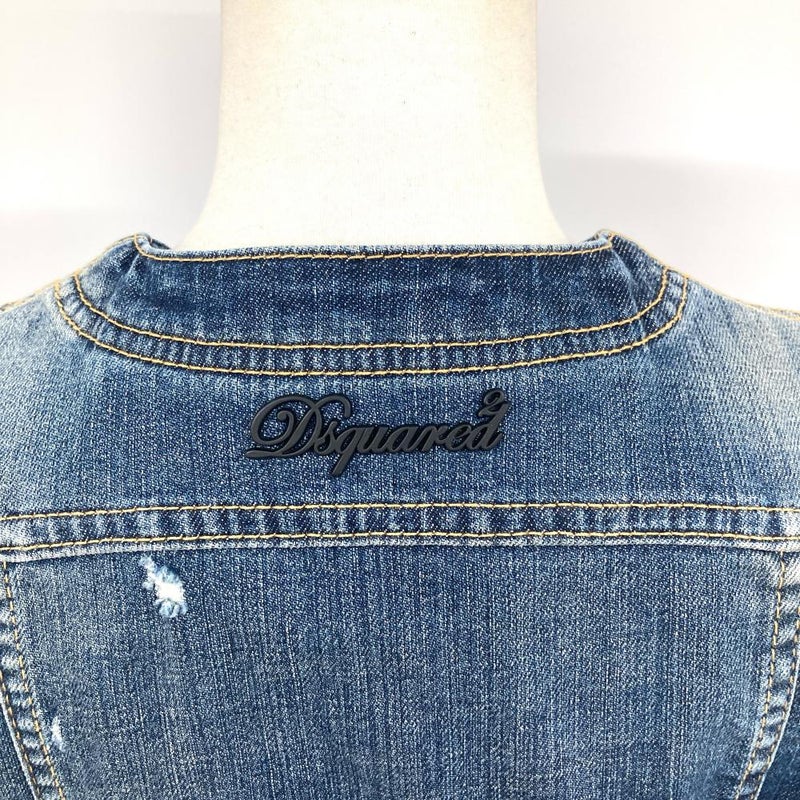 4. ディースクエアード DSQUARED2 ノーカラー デニムジャケット ブルー 38【中古】