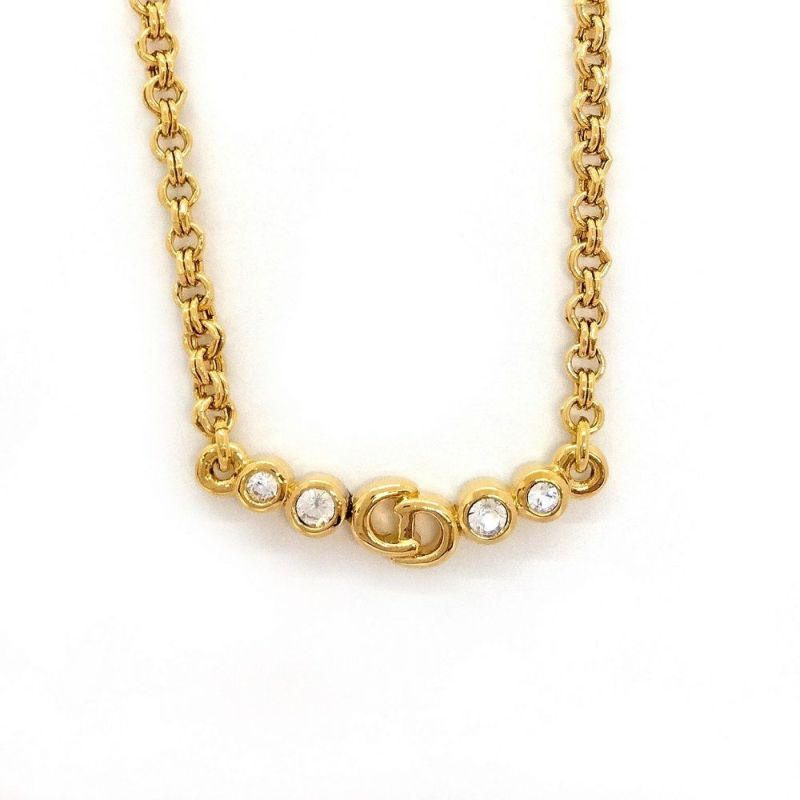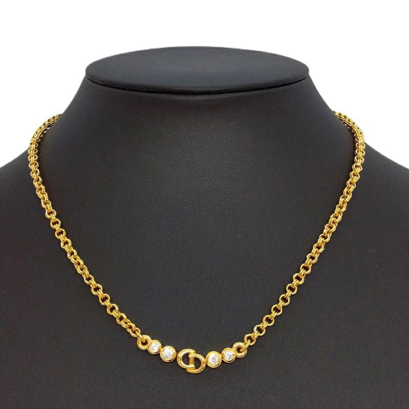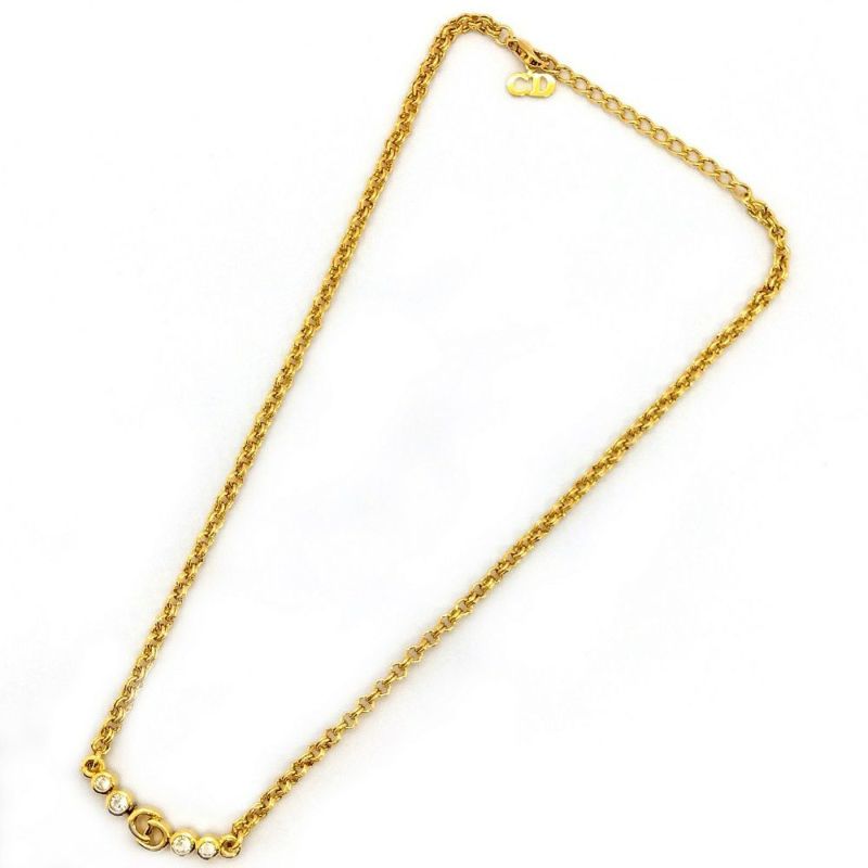 3. クリスチャンディオール Christian Dior CDロゴ 4P ラインストーン ネックレス ゴールド GP【中古】