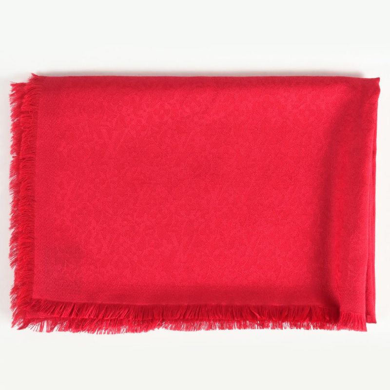 送料無料 ルイヴィトン LOUIS VUITTON モノグラム ショール シルク ウール カシミア 200cm M70833 レッド LP0138 ストール【中古】
