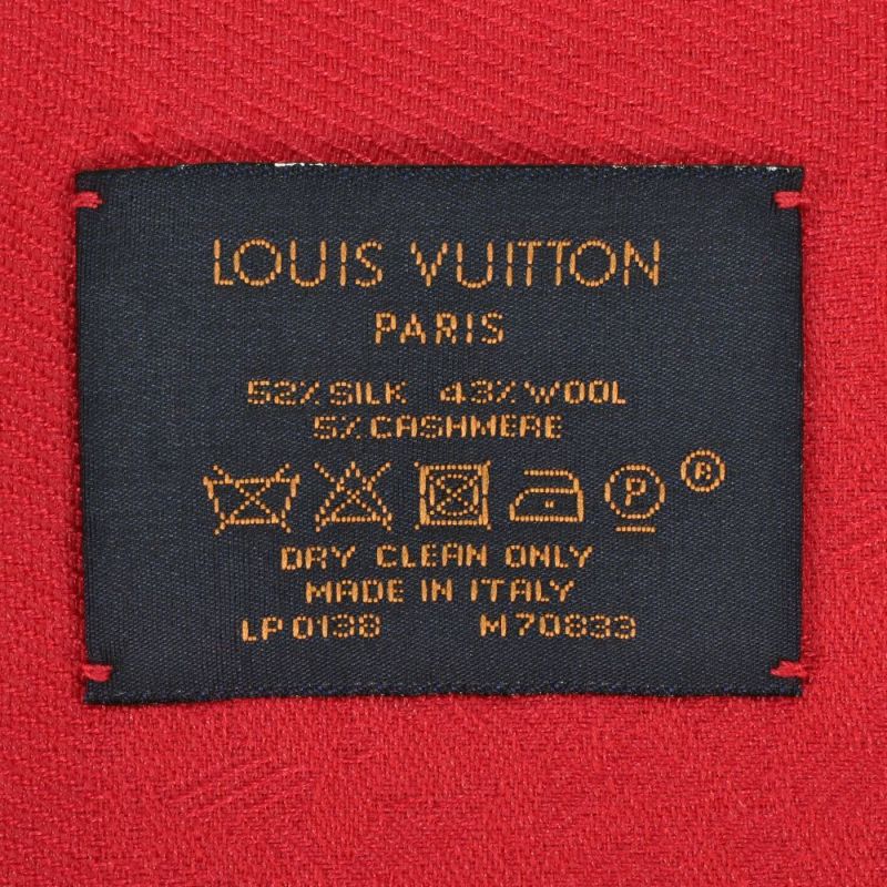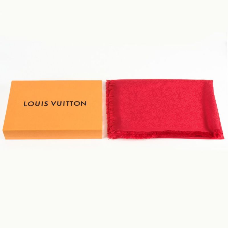 5. ルイヴィトン LOUIS VUITTON モノグラム ショール シルク ウール カシミア 200cm M70833 レッド LP0138 ストール【中古】