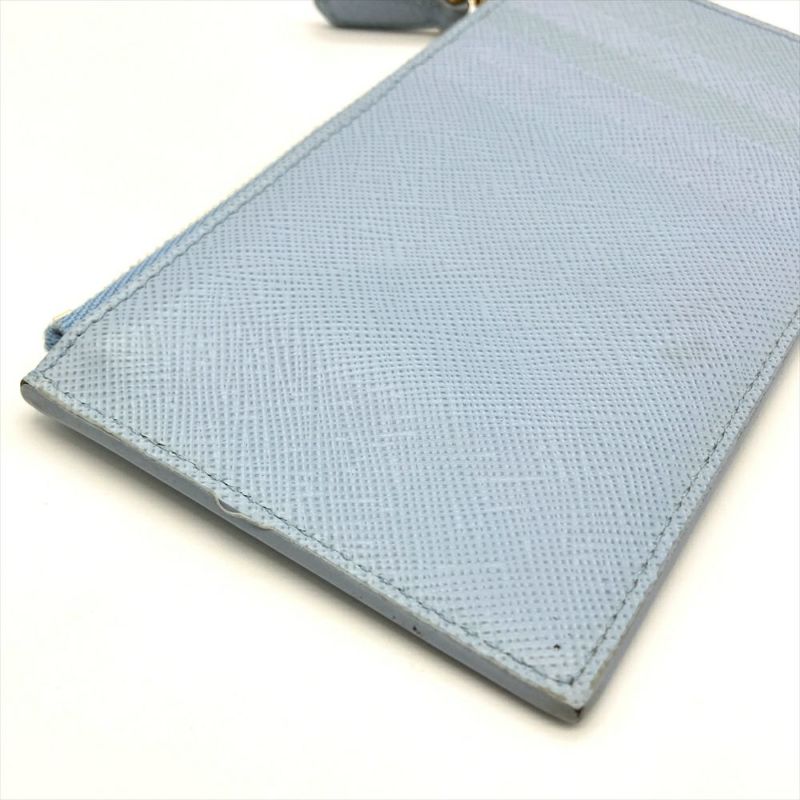 5. プラダ PRADA エンボスロゴ フラグメントケース カードケース サフィアーノ 1MC079 ブルー セレステ ユニセックス【中古】