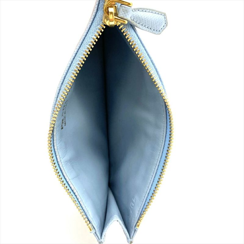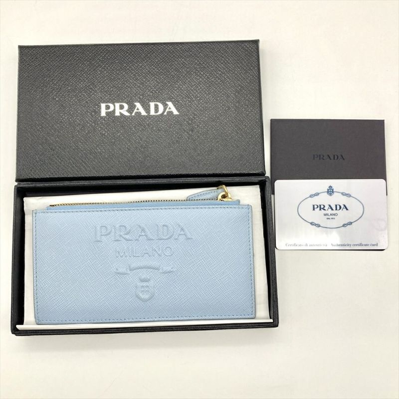 プラダ PRADA エンボスロゴ フラグメントケース カードケース サフィアーノ 1MC079 ブルー セレステ ユニセックス【中古】