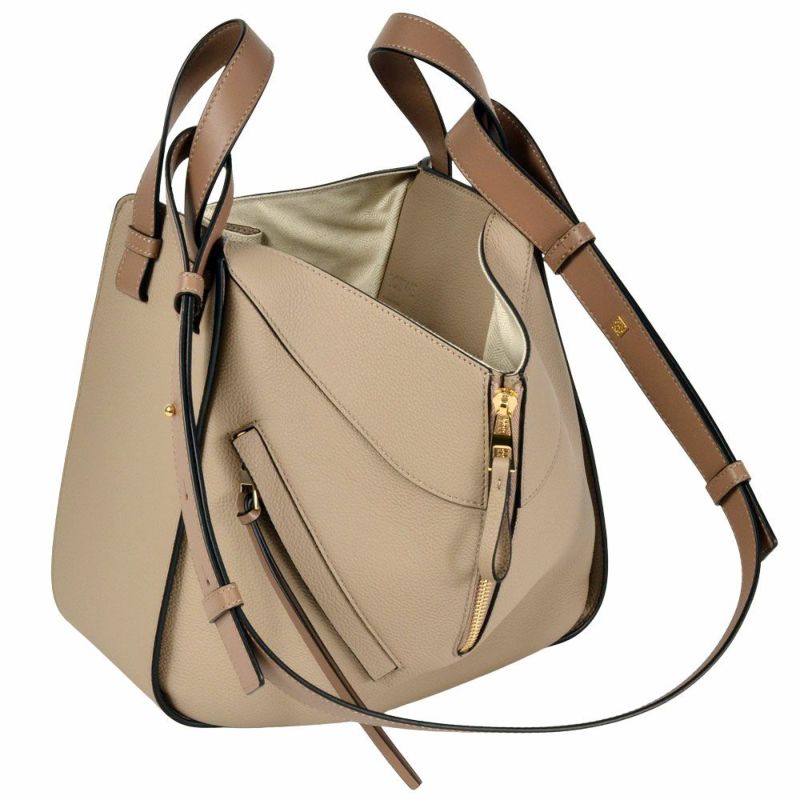 3. ロエベ LOEWE ハンモック スモール ハンドバッグ レザー A538S35X51 2150 ベージュ サンド ショルダーストラップ付き【中古】