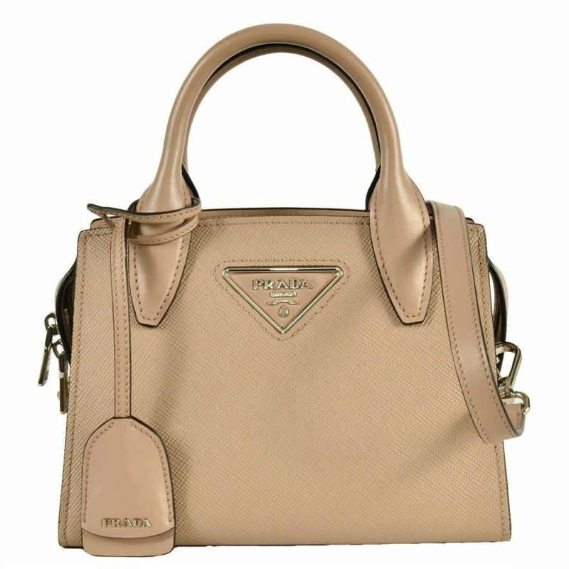 3. プラダ PRADA ロゴ ハンドバッグ 2WAY サフィアーノ 1BA269 ベージュ【中古】