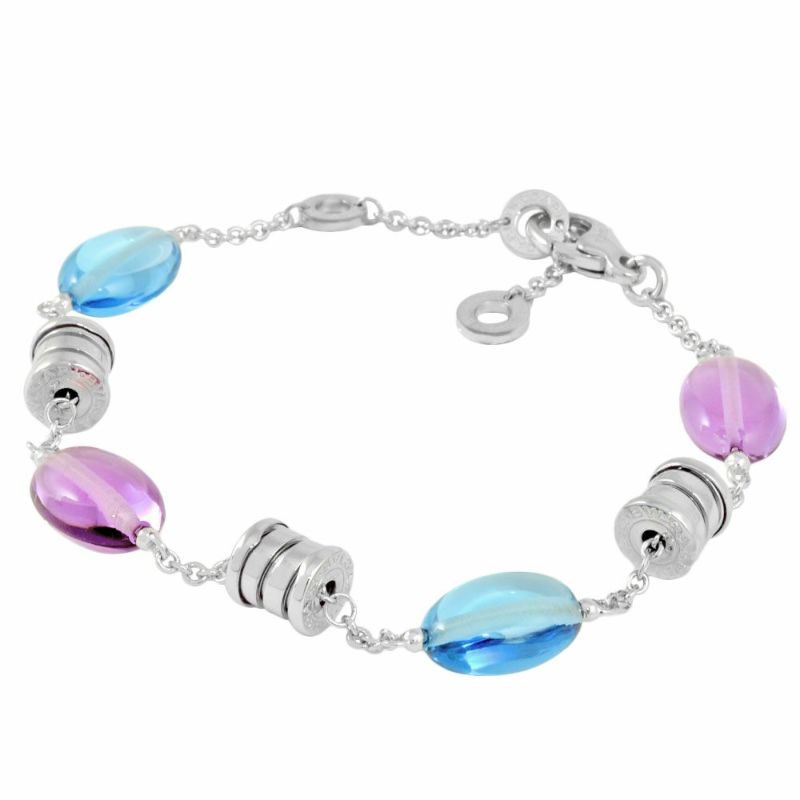 - ブルガリ BVLGARI ビーゼロワン エレメント ブレスレット アメジスト K18WG 13.4g ホワイトゴールド ブルートパーズ レディース【中古】