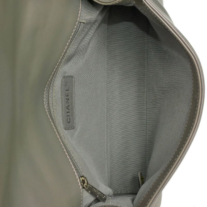 5. シャネル CHANEL ボーイシャネル ココマーク チェーン ショルダーバッグ レザー A67086 メタリックグレー シルバー金具【中古】