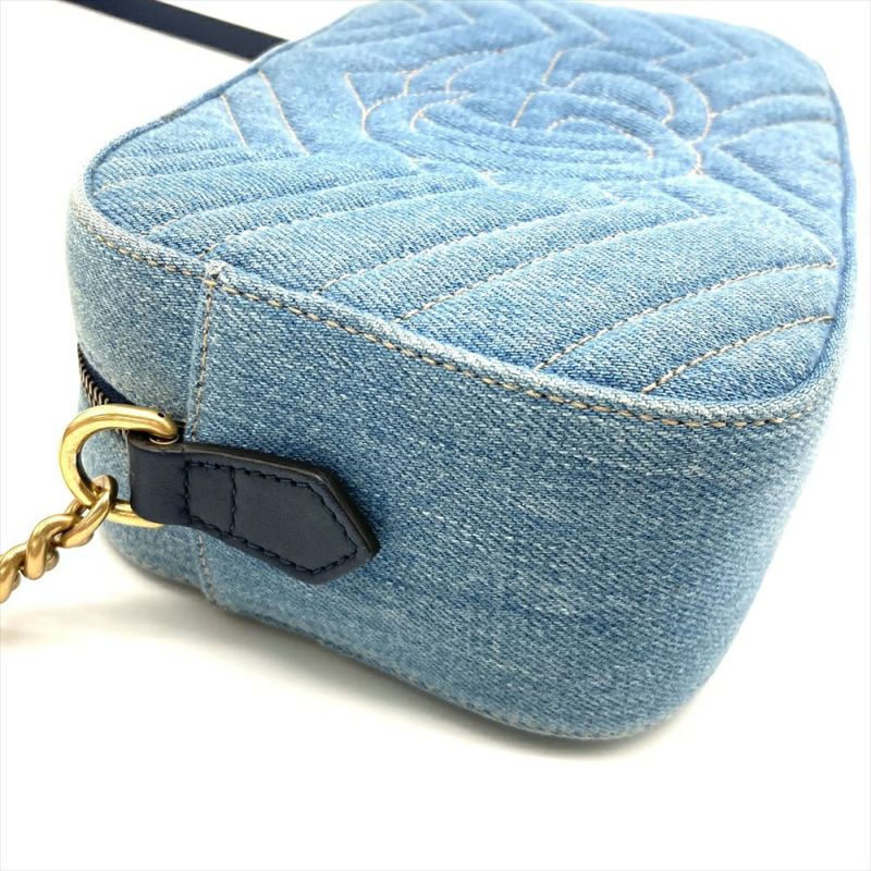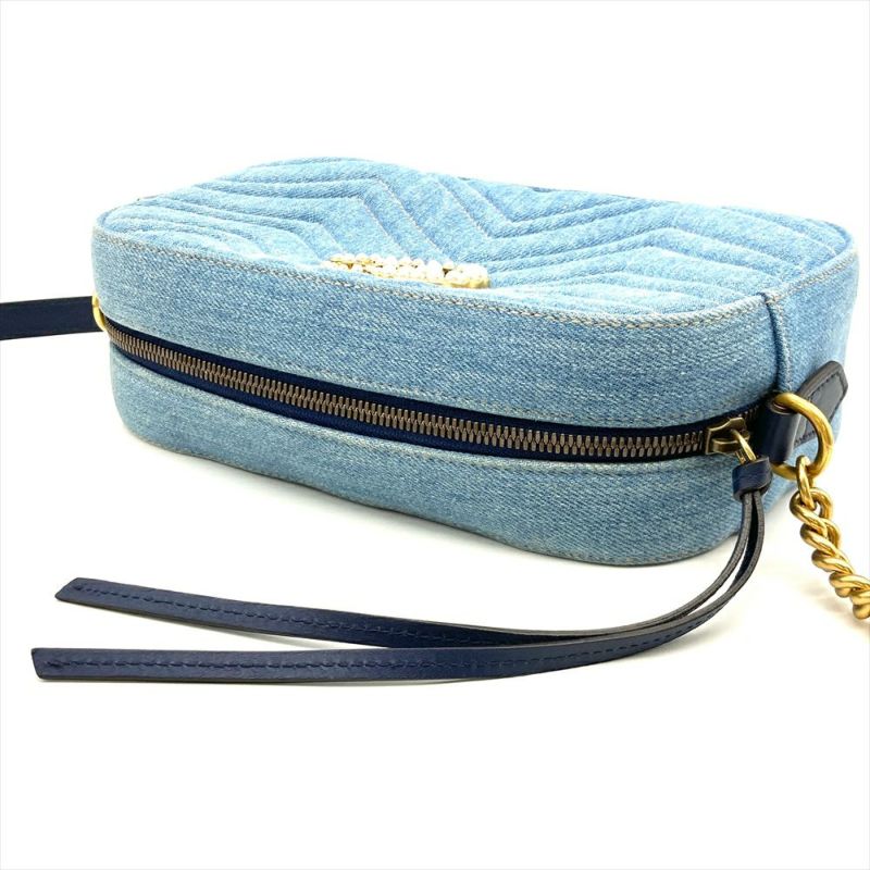 3. グッチ GUCCI GGマーモント キルティング ショルダーバッグ デニム 447632 ブルー フェイクパール レディース【中古】