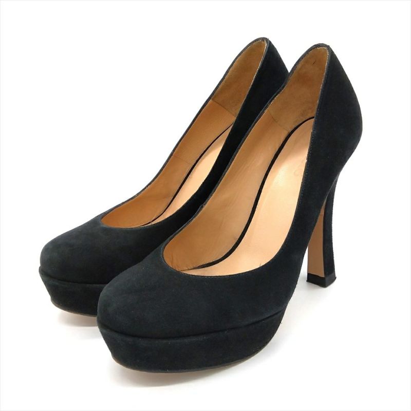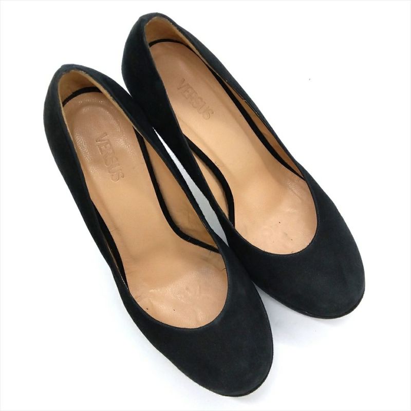5. ヴェルサーチェ VERSACE パンプス ブラック 36サイズ ハイヒール スエード ラウンド トゥ【中古】