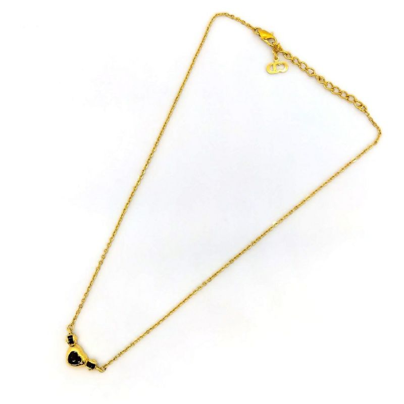 3. クリスチャンディオール Christian Dior ハートモチーフ ネックレス ゴールド GP 黒【中古】