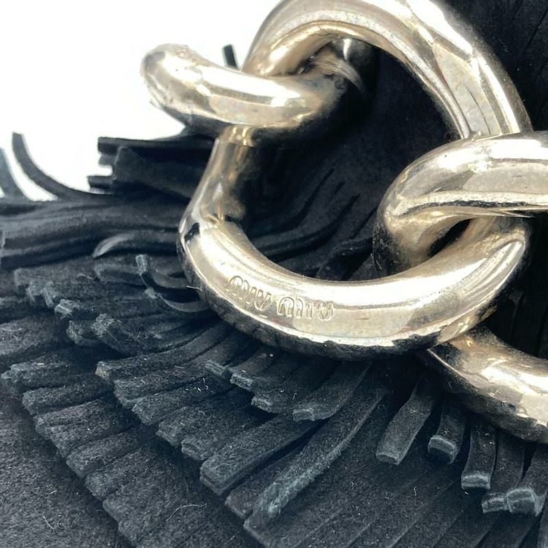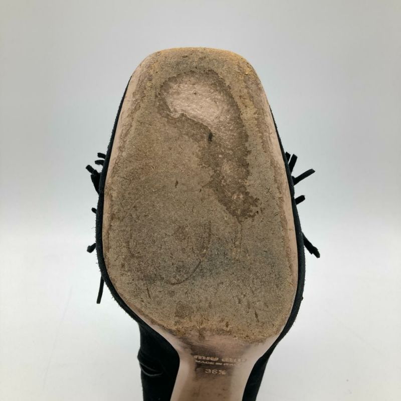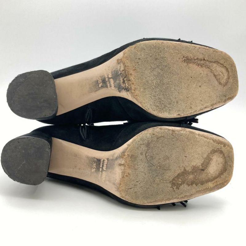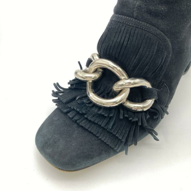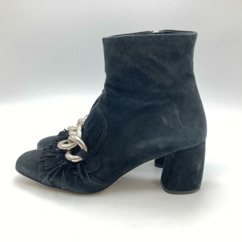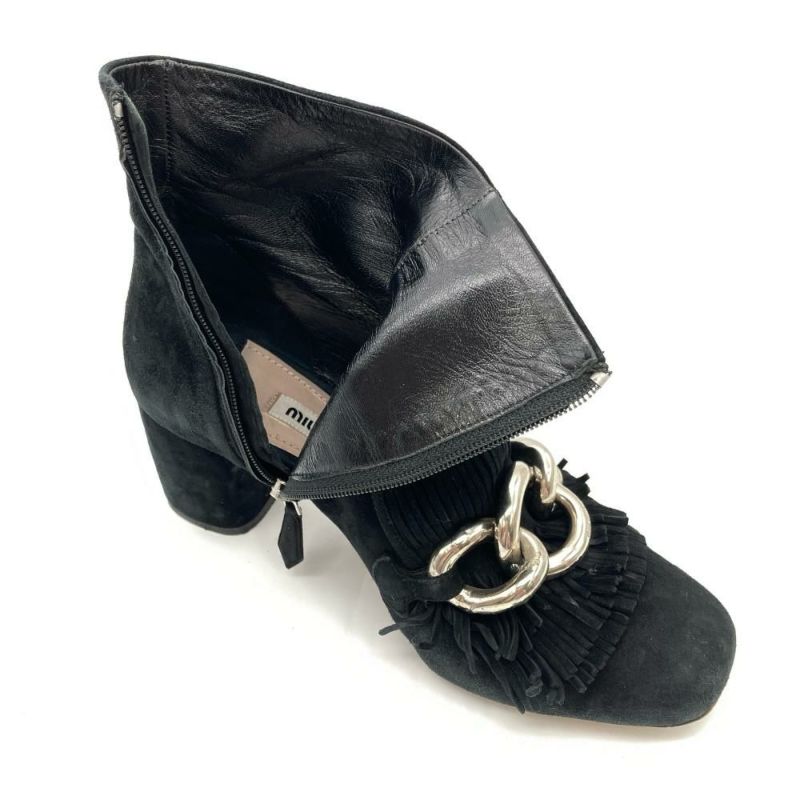 4. ミュウミュウ MIUMIU ショート ブーツ スウェード ブラック チェーン フリンジ 36 1/2 レディース【中古】