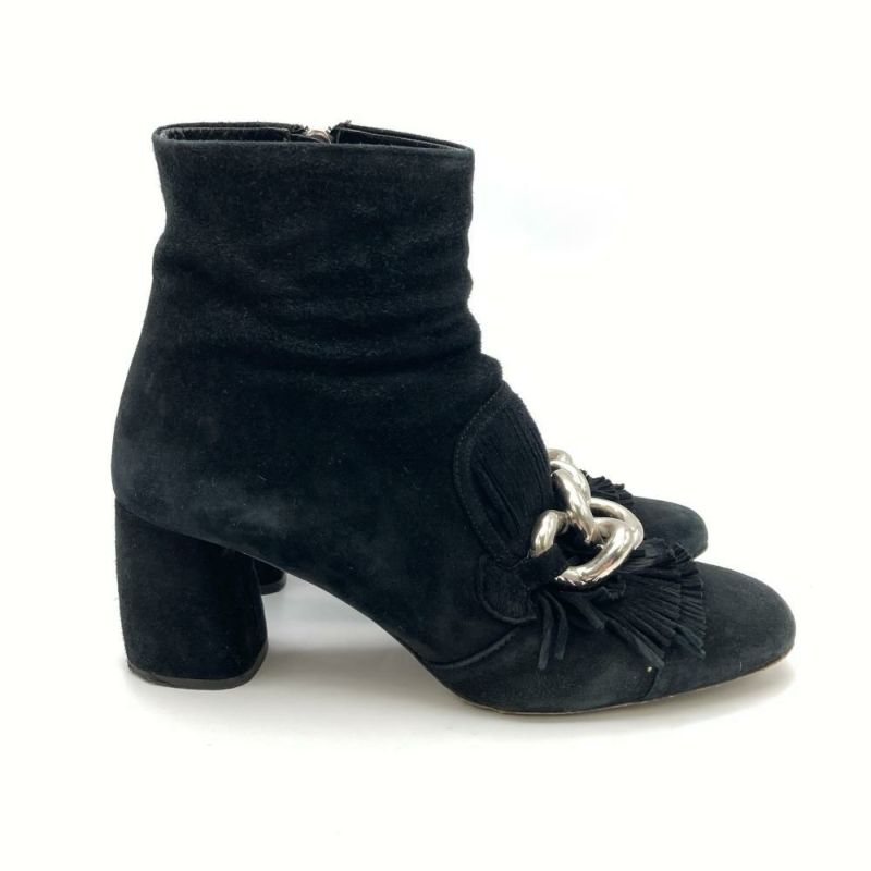 3. ミュウミュウ MIUMIU ショート ブーツ スウェード ブラック チェーン フリンジ 36 1/2 レディース【中古】