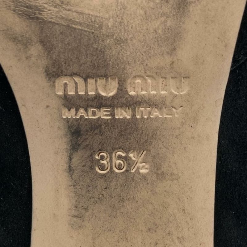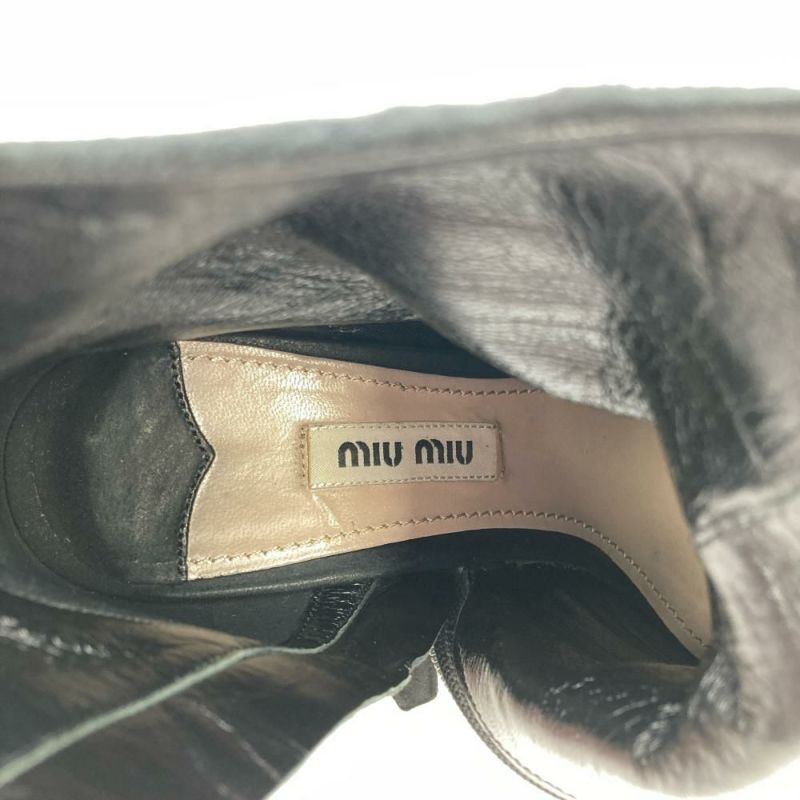 5. ミュウミュウ MIUMIU ショート ブーツ スウェード ブラック チェーン フリンジ 36 1/2 レディース【中古】
