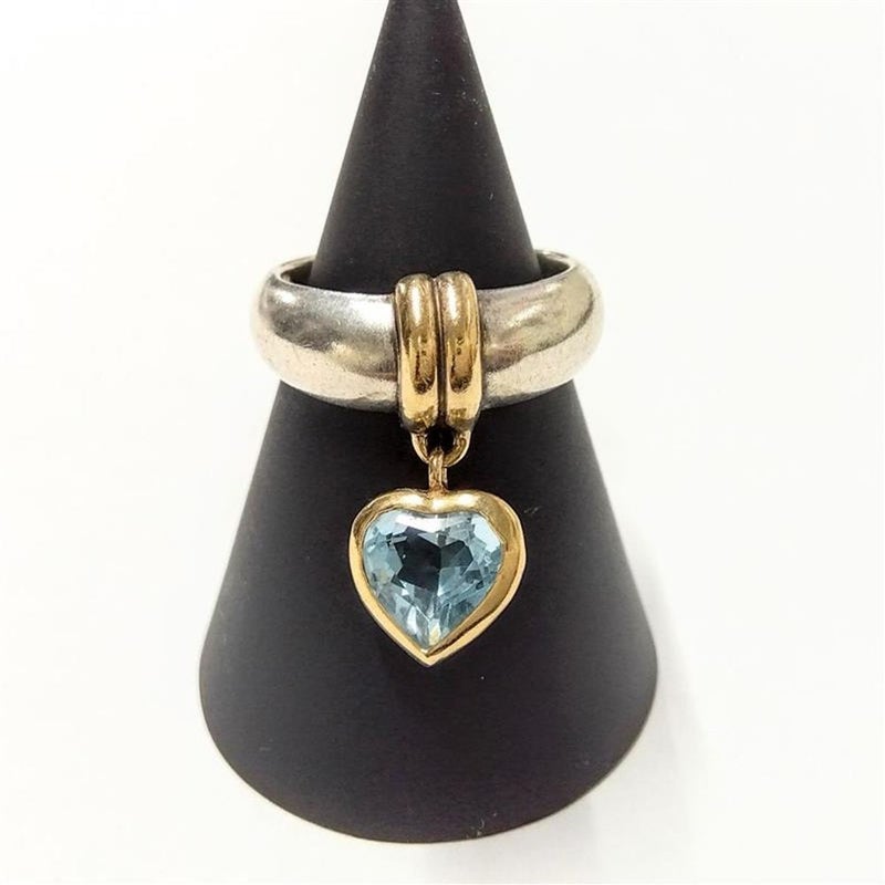 5. スタージュエリー STAR JEWELRY ハート チャーム リング 指輪 約6号 K14YG 3.9g SV925 ストーン イエローゴールド シルバー【中古】
