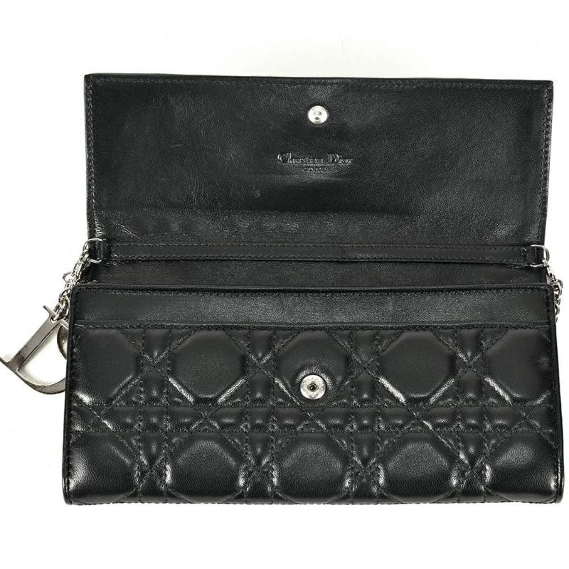 5. ディオール Dior レディディオール カナージュ チェーンウォレット 長財布 レザー CAL43060P ノワール シルバー金具【中古】