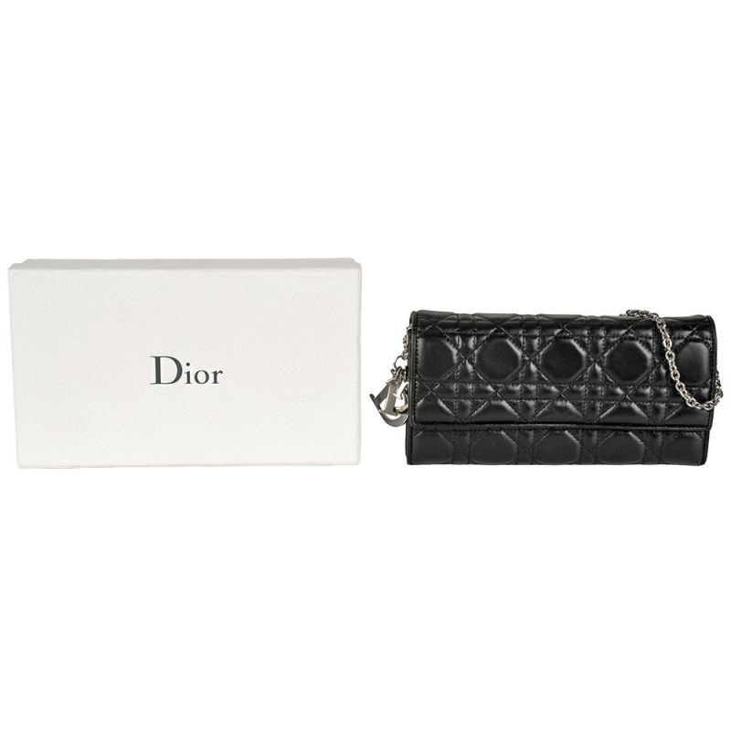 ディオール Dior レディディオール カナージュ チェーンウォレット 長財布 レザー CAL43060P ノワール シルバー金具【中古】