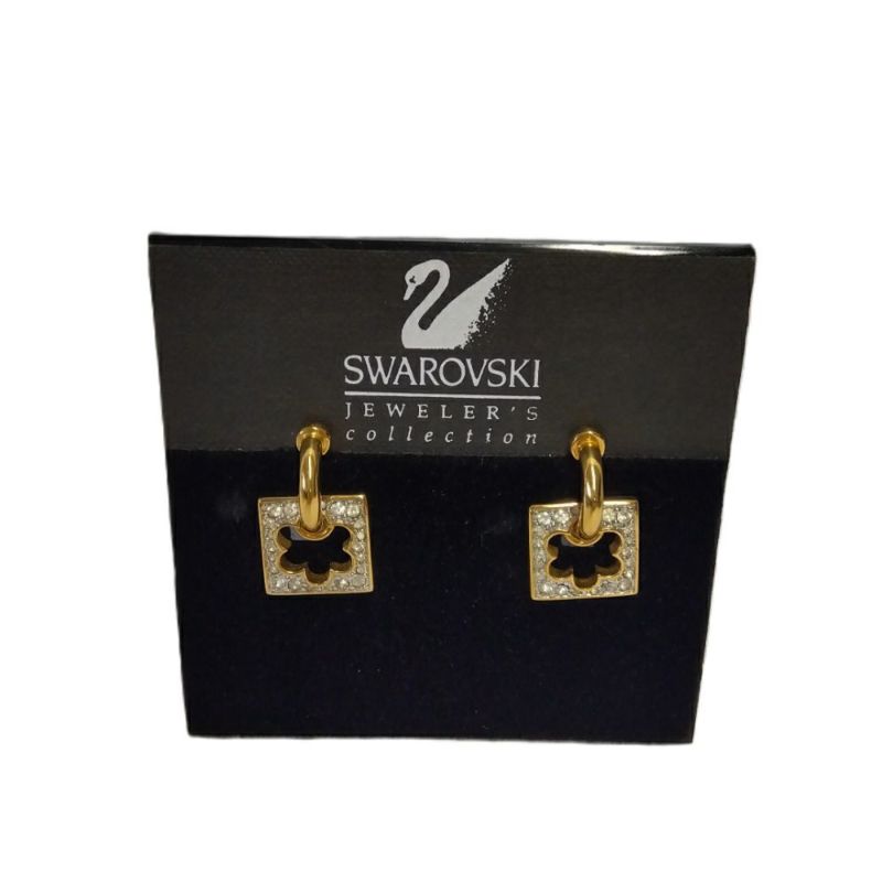 5. スワロフスキー SWAROVSKI スクエア フラワーモチーフ イヤリング ゴールド 訳あり【中古】