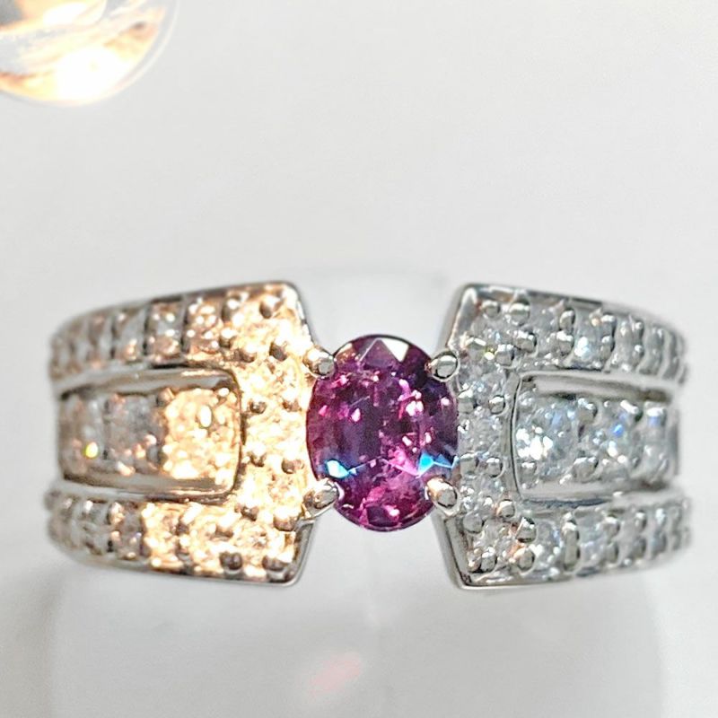 3. リング 指輪 アレキサンドライト 0.34ct 約8.5号 Pt900 7.8g プラチナ ダイヤモンド 0.53ct レディース【中古】