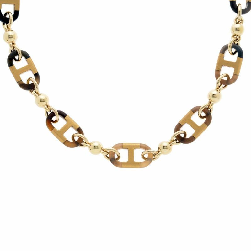 3. エルメス HERMES シュル メール ネックレス メタル バッファローホーン ゴールド シェーヌダンクル GP【中古】