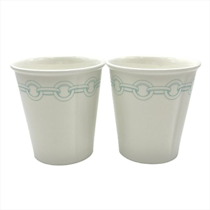 5. ティファニー Tiffany&Co. リターントゥ エッチング コーヒーカップ グラス ボーンチャイナ ホワイト ペアセット 陶磁器【中古】