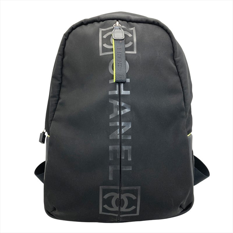 シャネル CHANEL ココマーク スポーツライン ロゴ ジップアップ リュック ナイロン ブラック シルバー×ブラック金具 バックパック 7桁9番台【中古】