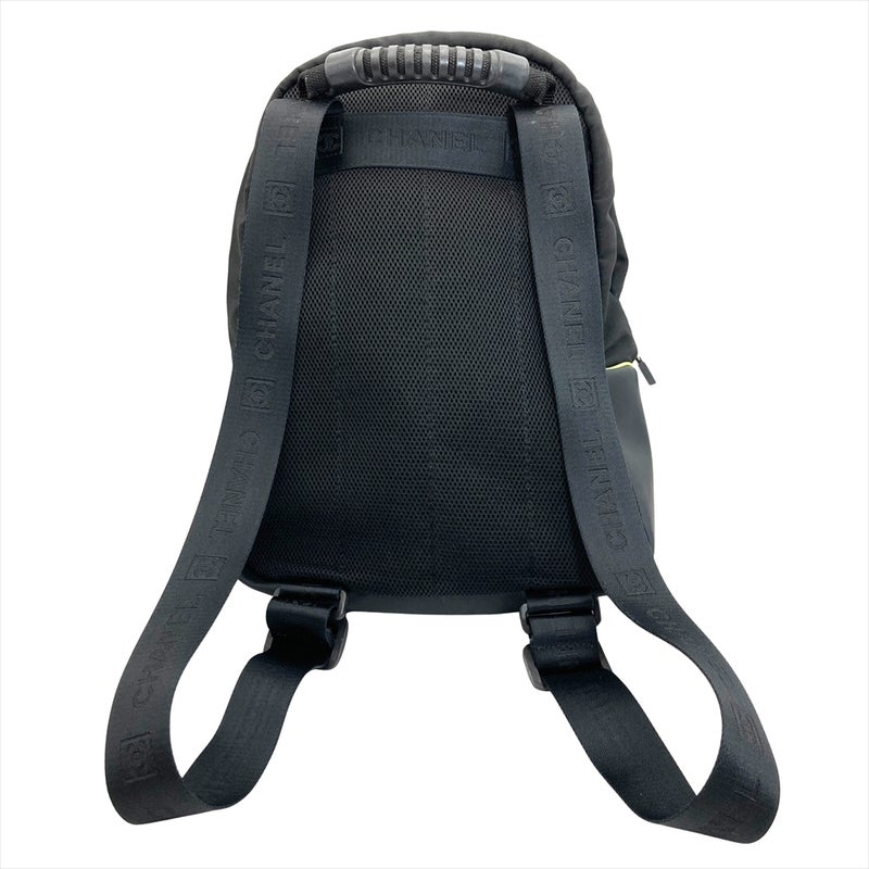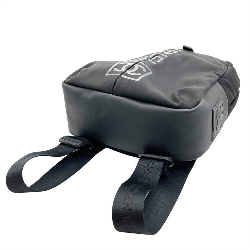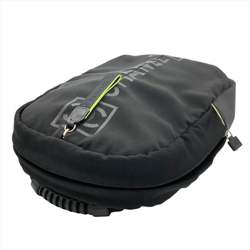 3. シャネル CHANEL ココマーク スポーツライン ロゴ ジップアップ リュック ナイロン ブラック シルバー×ブラック金具 バックパック 7桁9番台【中古】
