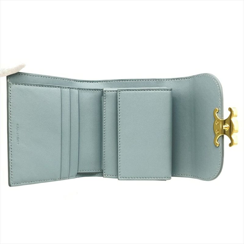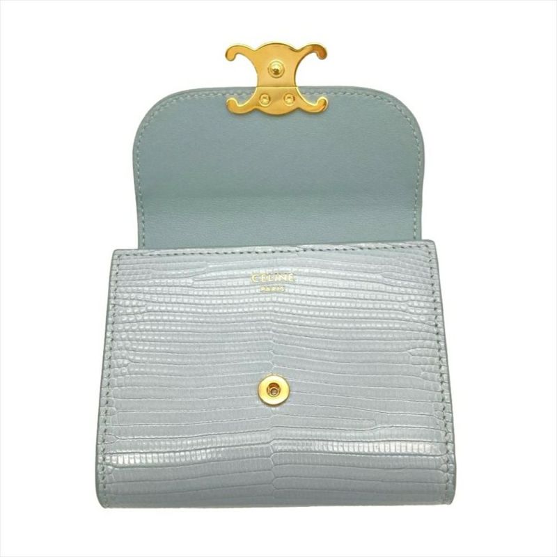 3. セリーヌ CELINE トリオンフ スモール フラップウォレット 三つ折り財布 リザード ブルー アイスブルー【中古】