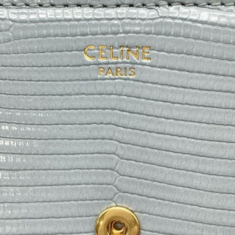 5. セリーヌ CELINE トリオンフ スモール フラップウォレット 三つ折り財布 リザード ブルー アイスブルー【中古】