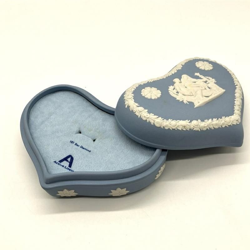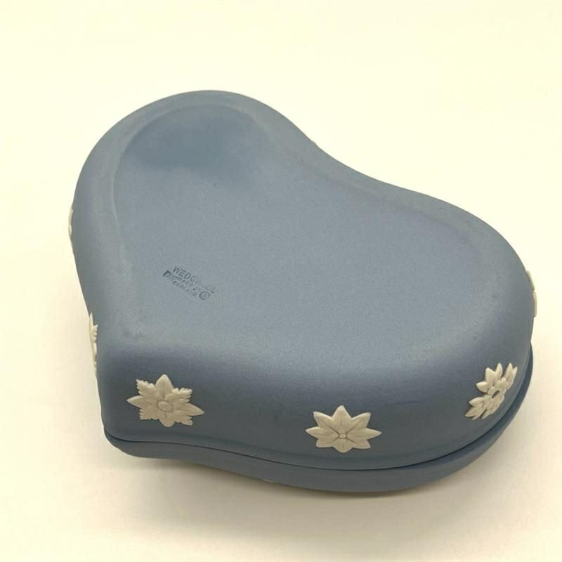 5. ウェッジウッド WEDGWOOD ジャスパー ハート リングケース 陶器 ペールブルー【中古】