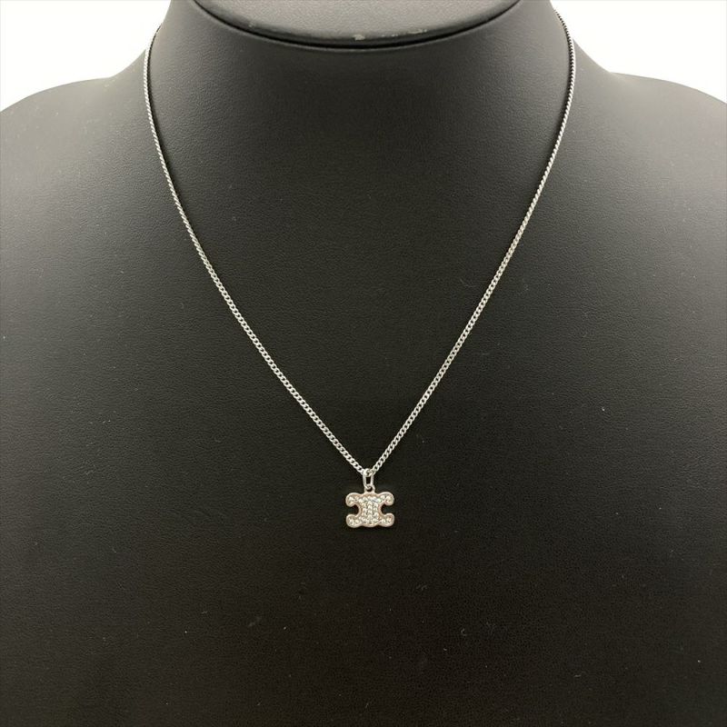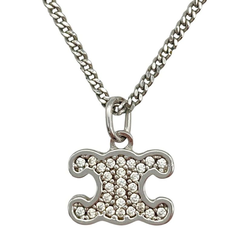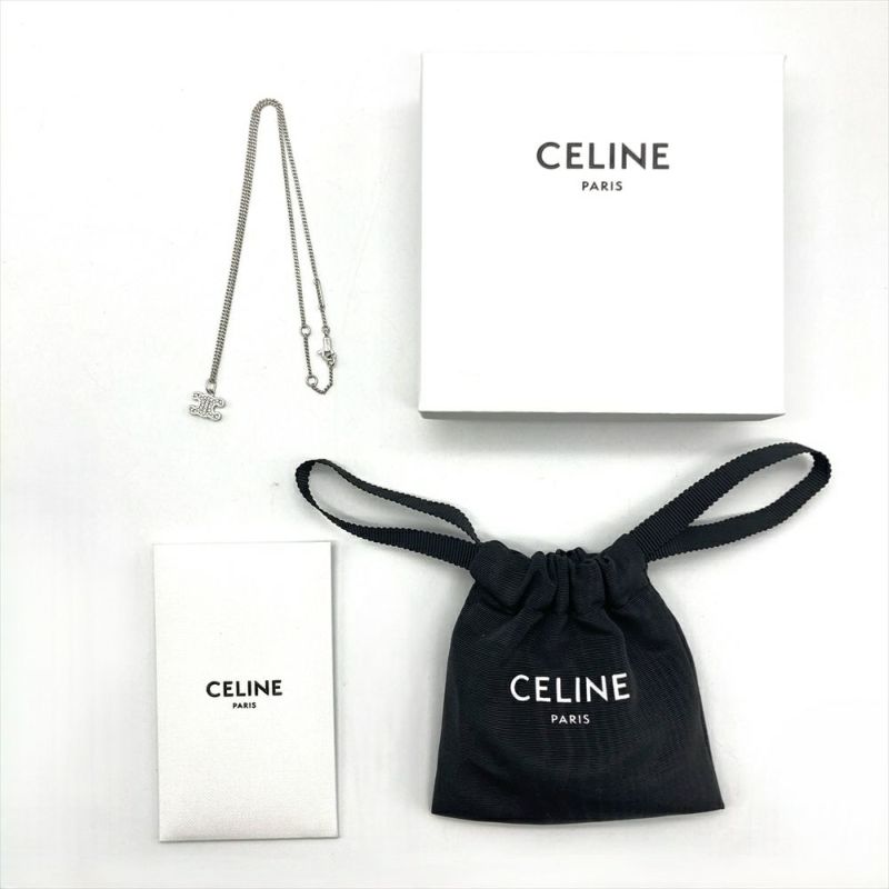 3. セリーヌ CELINE トリオンフ ネックレス メタル シルバー ロゴ 箱付き レディース【中古】
