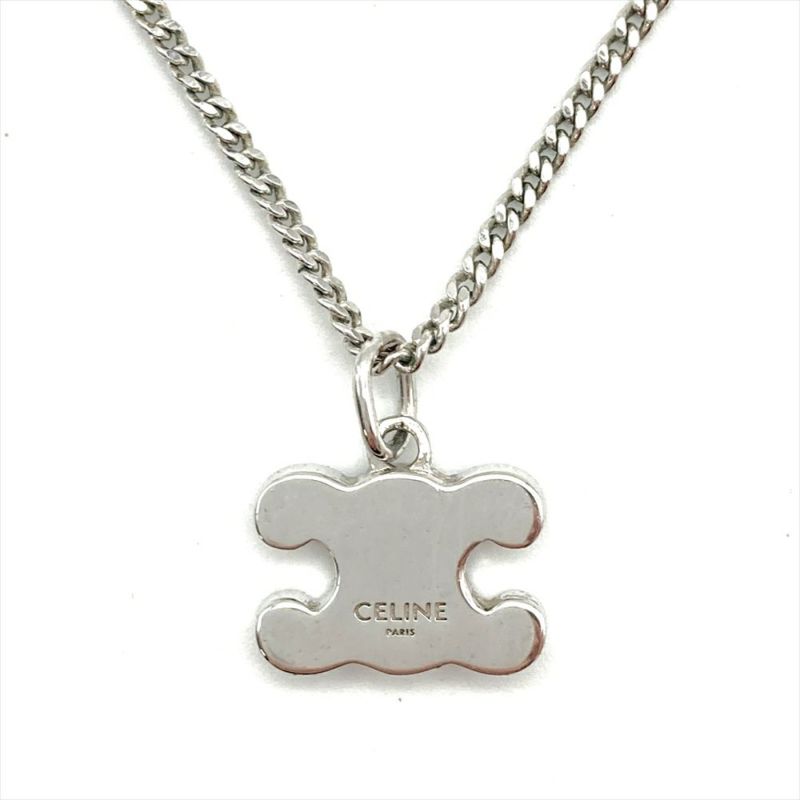 4. セリーヌ CELINE トリオンフ ネックレス メタル シルバー ロゴ 箱付き レディース【中古】