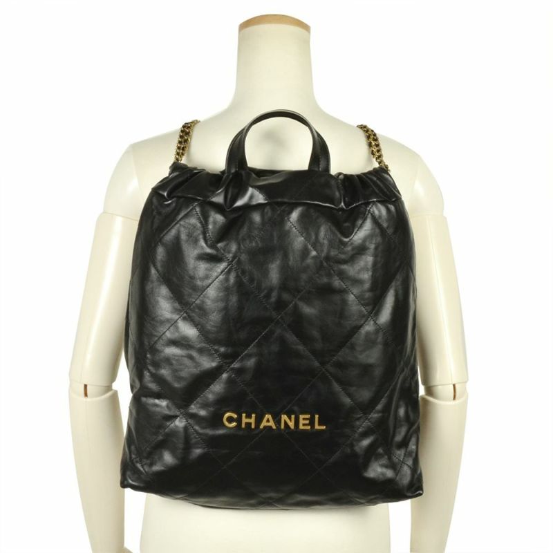 4. シャネル CHANEL シャネル22 マトラッセ リュック レザー ブラック ナップザック チェーンショルダー レディース【中古】