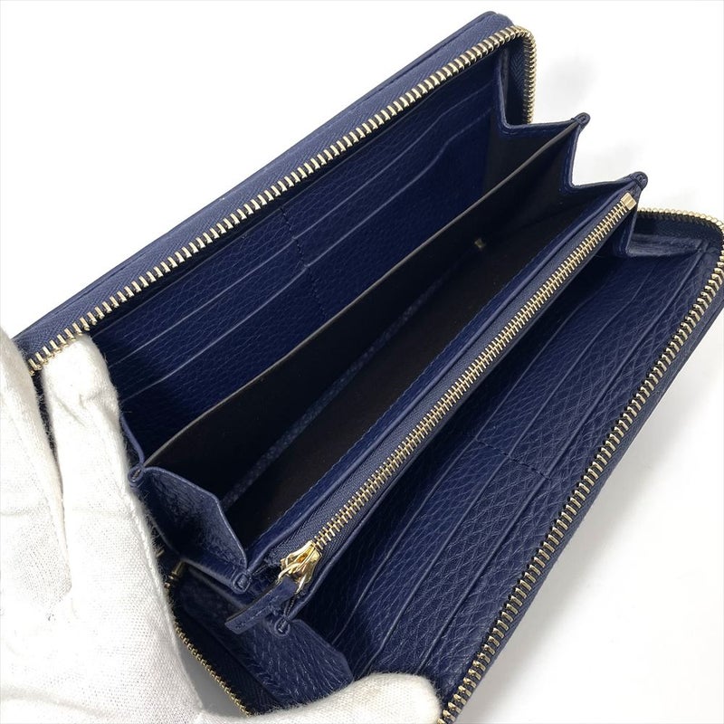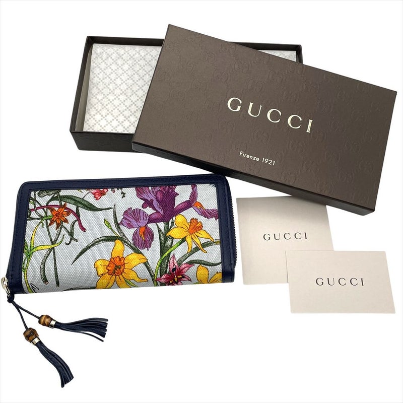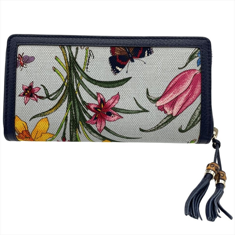 グッチ GUCCI 日本50周年記念 フローラ 長財布 シマレザー キャンバス ネイビー ゴールド金具 バンブータッセル レディース【中古】