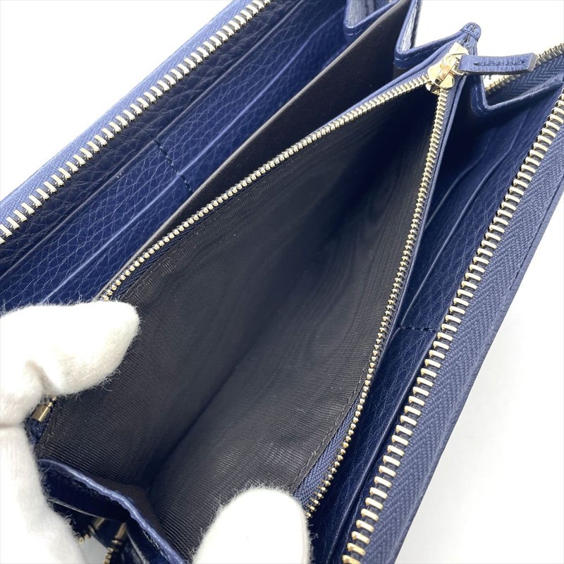 5. グッチ GUCCI 日本50周年記念 フローラ 長財布 シマレザー キャンバス ネイビー ゴールド金具 バンブータッセル レディース【中古】
