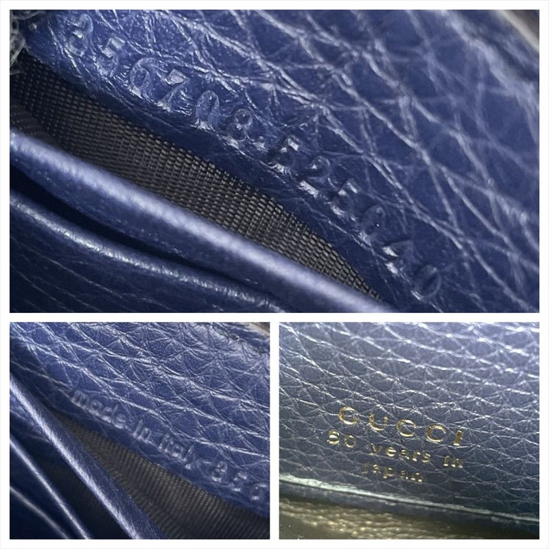 3. グッチ GUCCI 日本50周年記念 フローラ 長財布 シマレザー キャンバス ネイビー ゴールド金具 バンブータッセル レディース【中古】