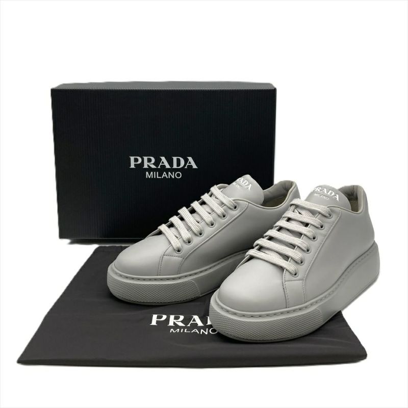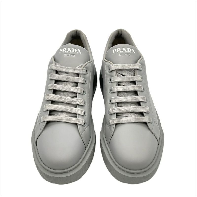 4. プラダ PRADA スニーカー レザー 1E892L グレー 39 ローカット レディース【中古】