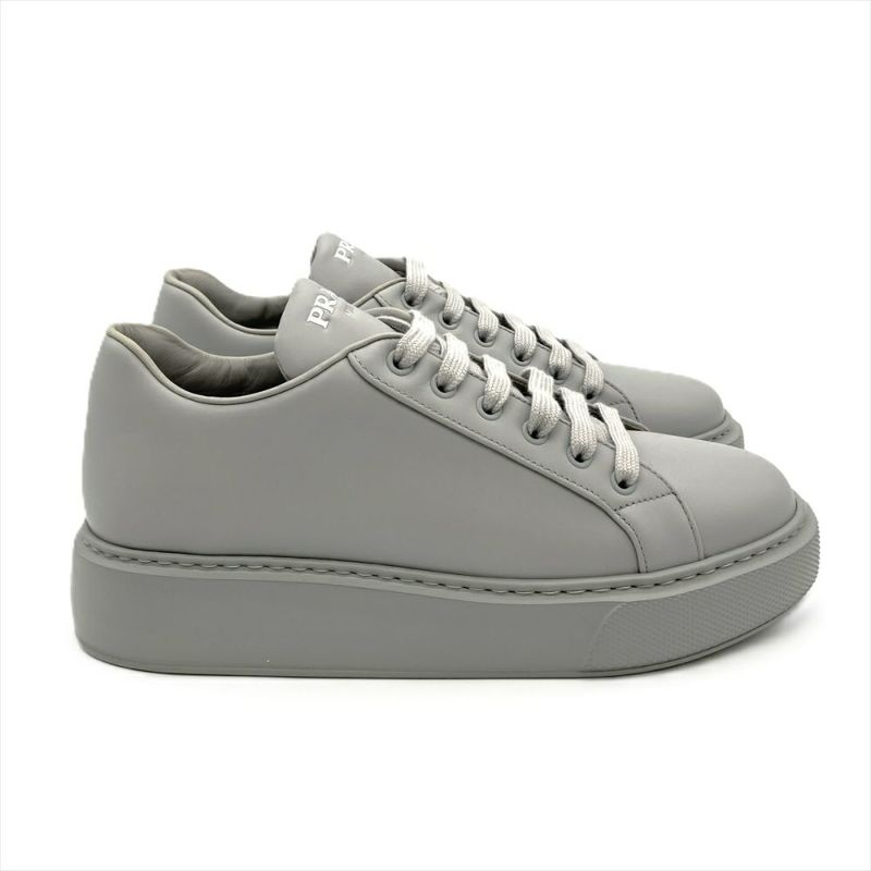 3. プラダ PRADA スニーカー レザー 1E892L グレー 39 ローカット レディース【中古】
