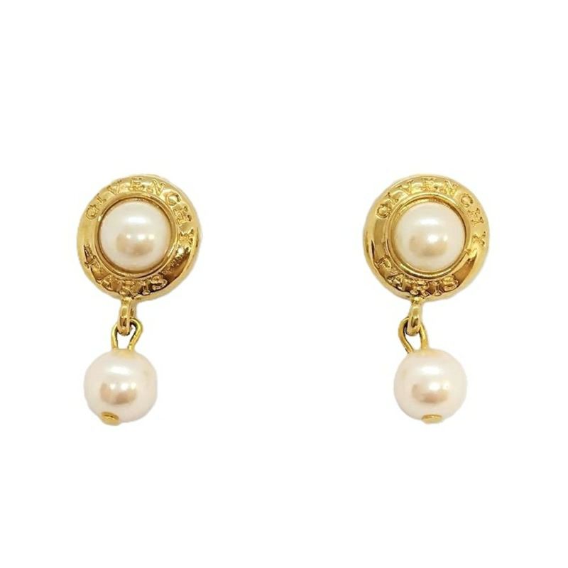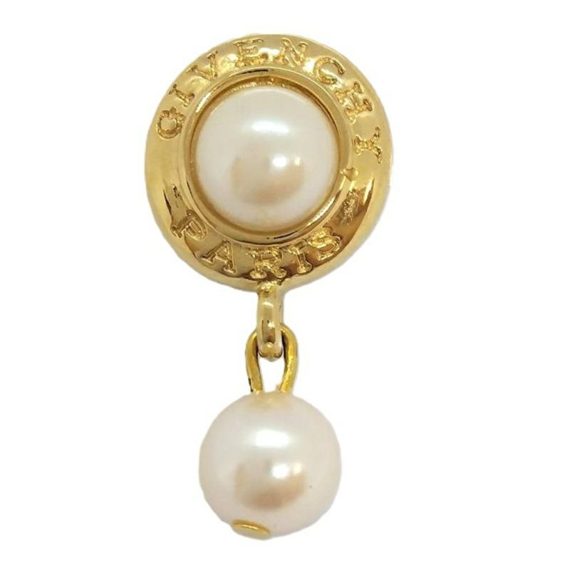 4. ジバンシー Givenchy フェイクパール ロゴ イヤリング メタル ゴールド レディース【中古】