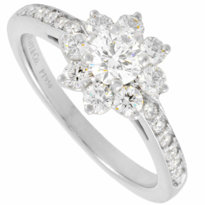 - ティファニー Tiffany&Co. コンティニュアスロウ フローラ リング 指輪 ダイヤモンド 約6号 Pt950 フラワー レディース【中古】