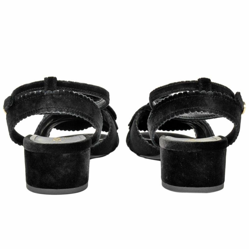 5. シャネル CHANEL カメリア ポインテッドトゥ サンダル ベルベット ブラック 36Cサイズ 約23cm ほぼ未使用 レディース【中古】