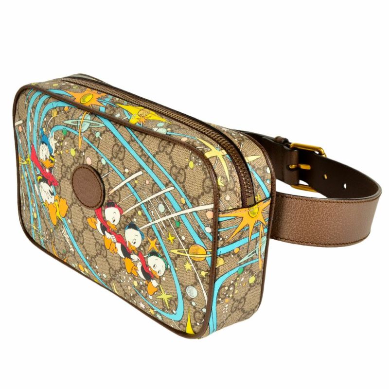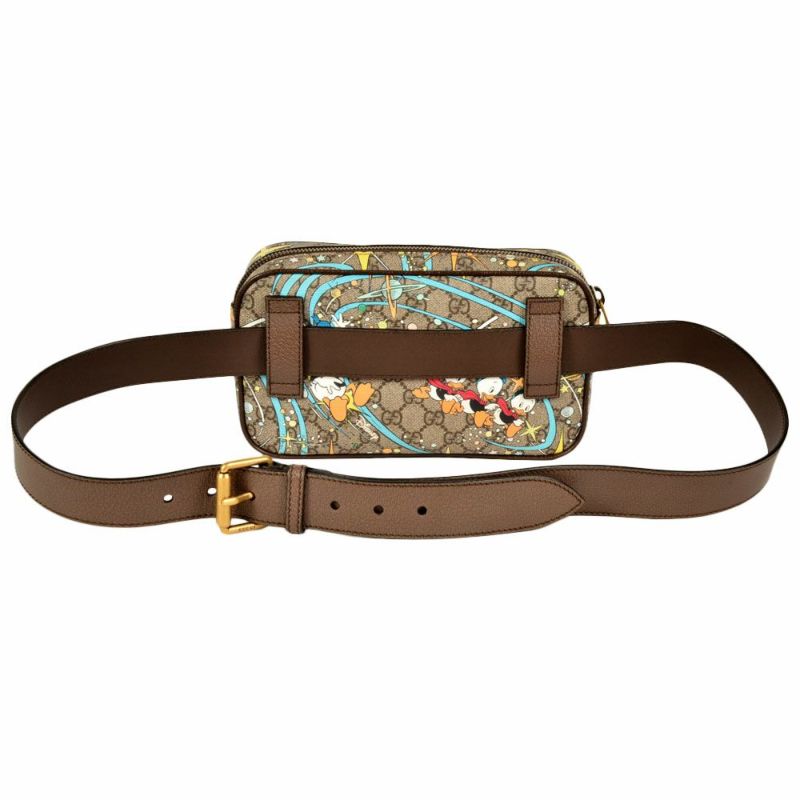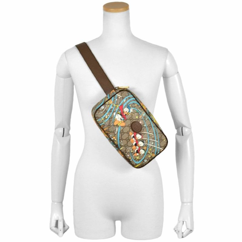 5. グッチ GUCCI ディズニーコラボ ドナルドダック ベルトバッグ ボディバッグ GGスプリームキャンバス レザー 602695 ブラウン ゴールド金具【中古】