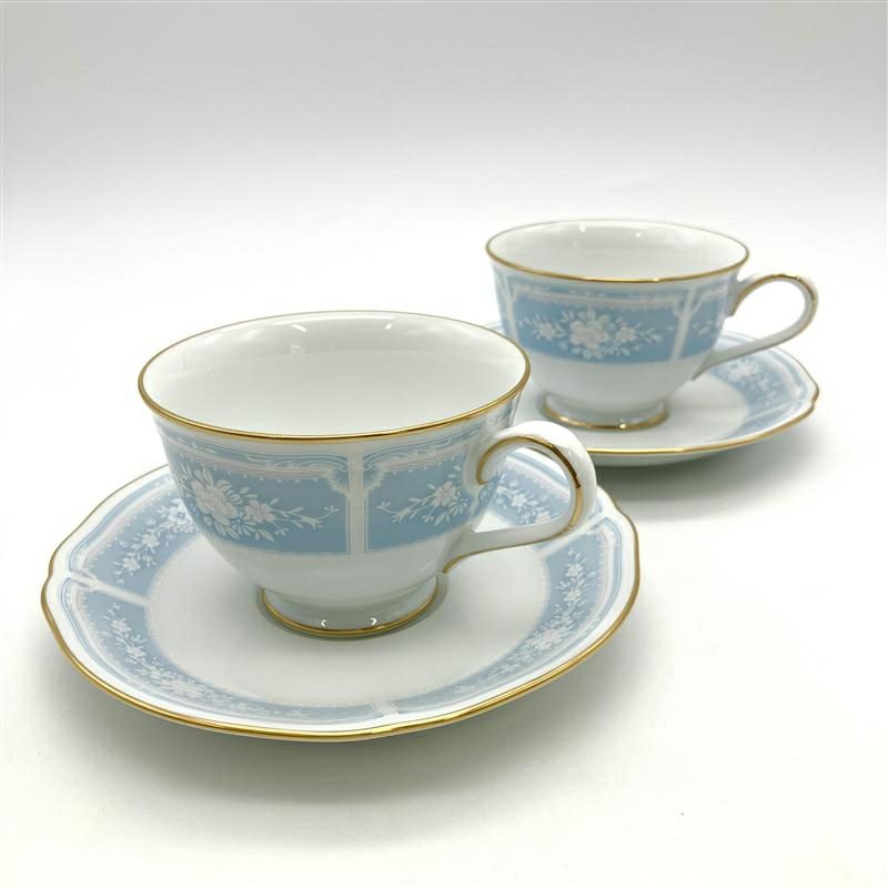 ノリタケ NORITAKE レースウッドゴールド カップ&ソーサー ペアセット 1507 Y6578A ブルー【中古】