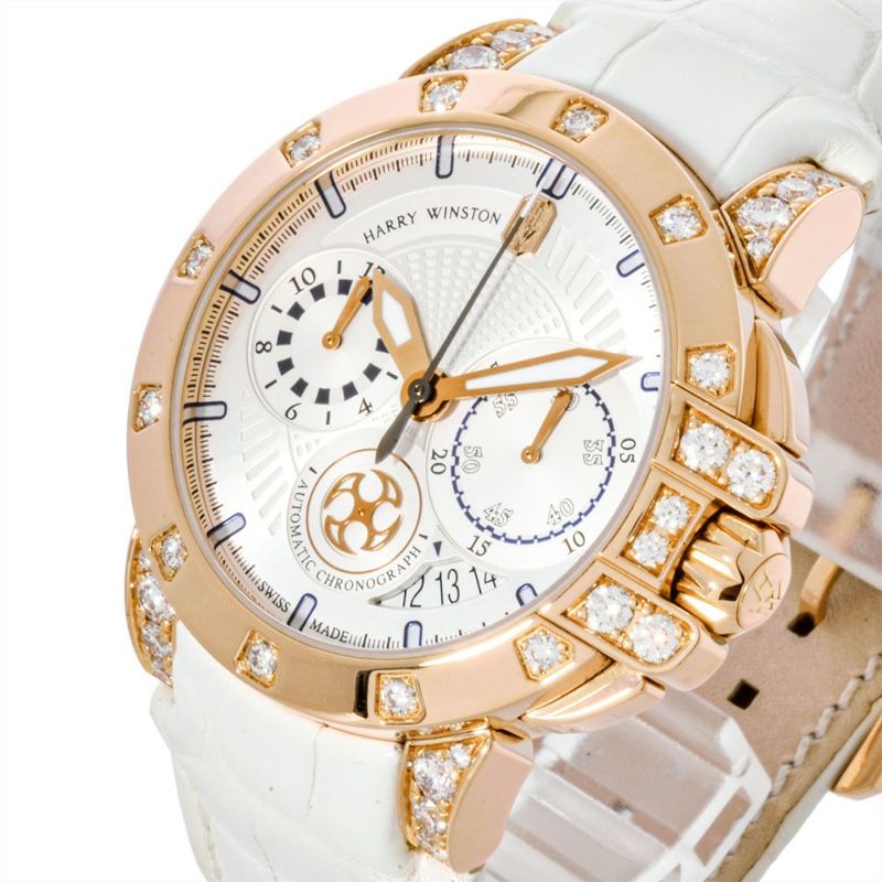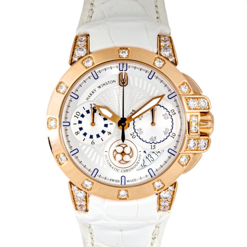 - ハリーウィンストン HARRY WINSTON OCEACH36RR001 オーシャン クロノグラフ オートマティック 36mm 腕時計 シルバー文字盤 デイト K18RG ダイヤベゼル メンズ【中古】