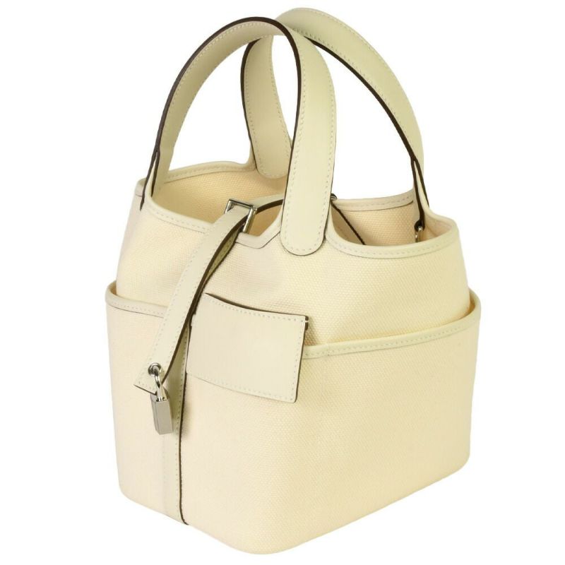 3. エルメス HERMES ピコタンロック カーゴ PM ハンドバッグ スイフト トワルゴエラン キャンバス U刻印 ナタ シルバー金具 アイボリー【中古】
