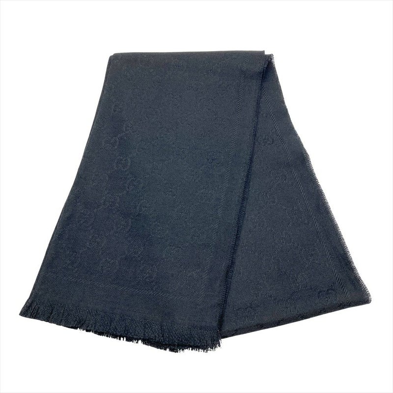 グッチ GUCCI GGマフラー ストール ウール 133483 3G200 ブラック 美品 大判 ユニセックス【中古】