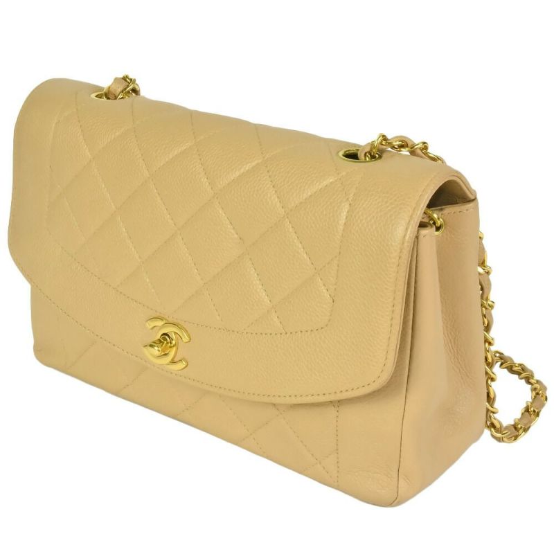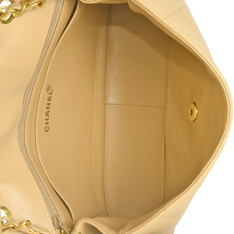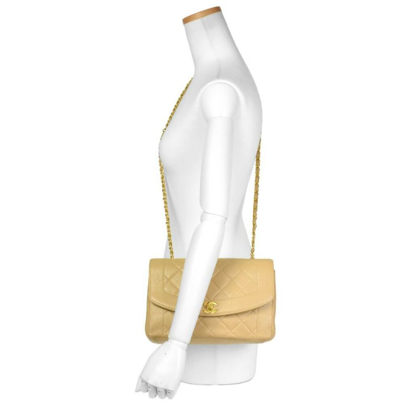 4. シャネル CHANEL ダイアナ25 マトラッセ シングルチェーン ショルダーバッグ キャビアスキン A01165 ベージュ ゴールド金具【中古】
